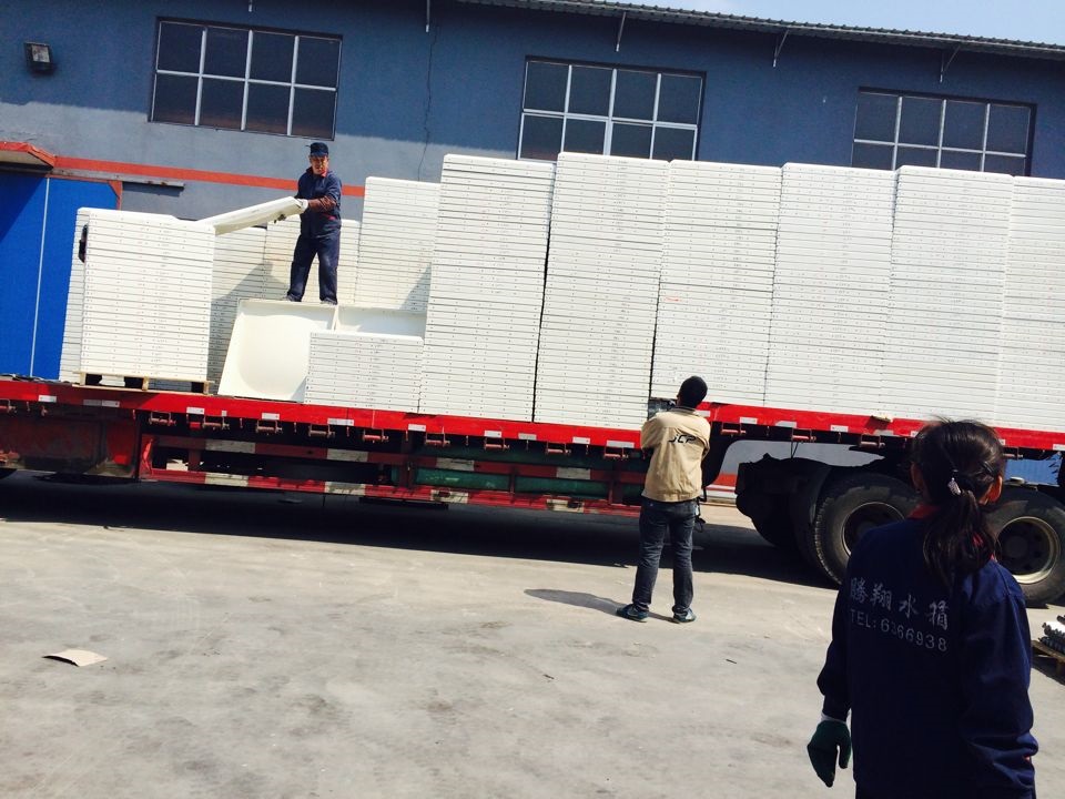 發(fā)往深圳的29臺玻璃鋼水箱裝車出發(fā)了