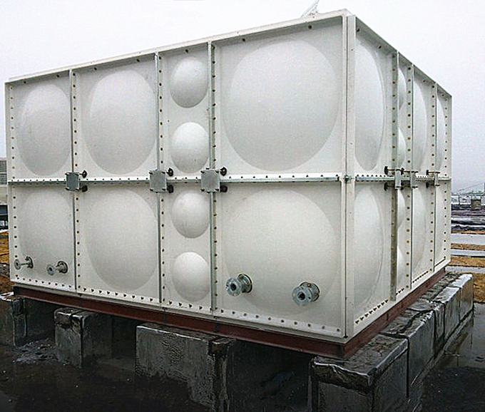 玻璃鋼水箱在安裝前,先要檢查水箱混凝土基礎表面是否平整,然后按照水箱底板尺寸,將已經截好的槽鋼進行焊接組合,然后開始組裝水箱板,水箱板與水箱板之間中間夾密封條,以螺栓連接。