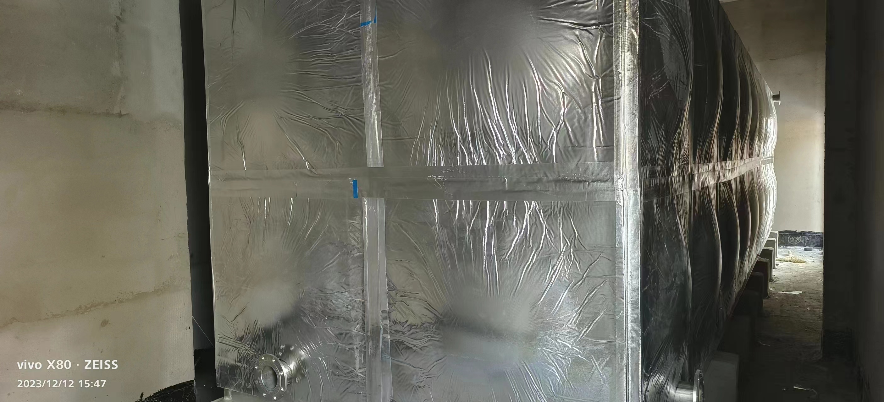 組裝底板,把板擺好,板與板中間用氬弧焊機焊好,把底板連接起來,放在焊好的槽鋼底座上。安裝時箱體與墻體之間留出不小于700毫米的檢修通道,箱頂、箱底不小于500毫米。