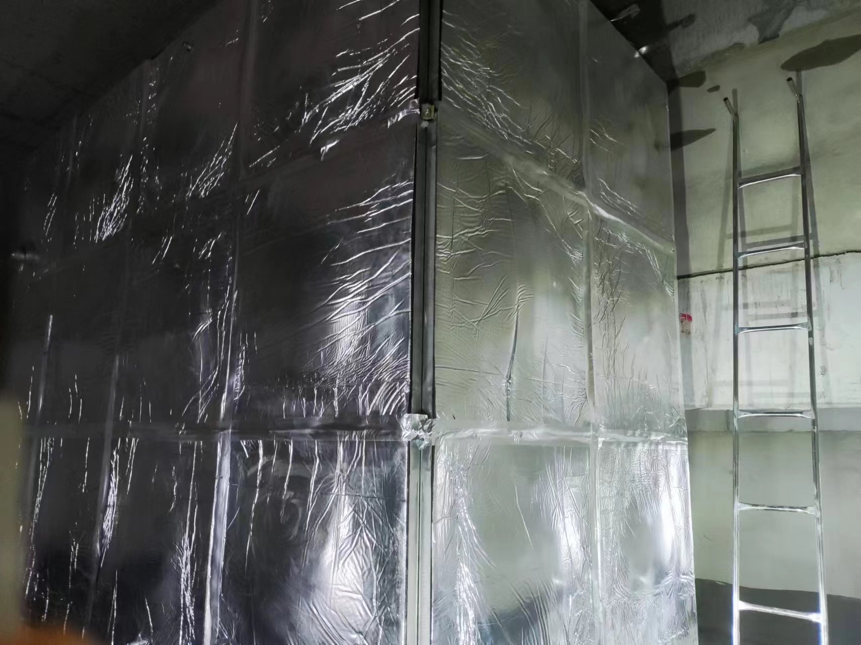 6、外保溫和爬梯:如需隔熱,則采用外保溫施工,中間采用聚氨酯泡沫保溫棉,外板采用外焊,要求整齊,無歪斜。全部完成安裝爬梯,便于以后維護。