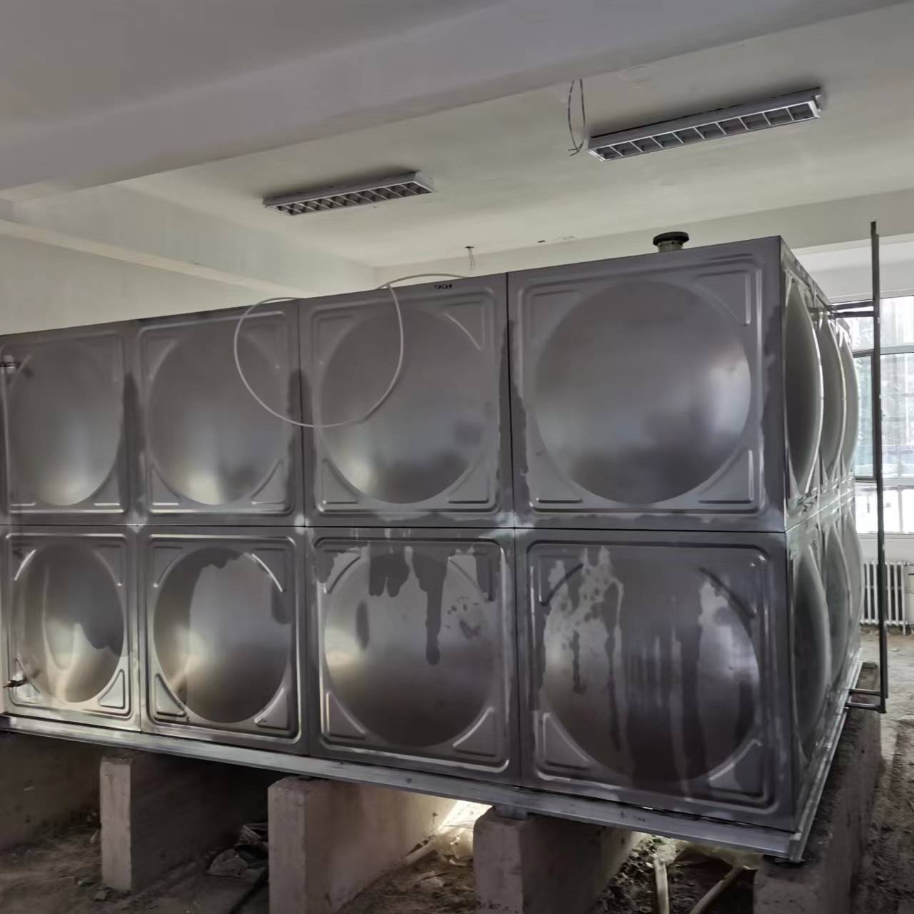 我公司承接的河北省石家莊市第九十三中學(xué)一臺24立方304不銹鋼水箱已經(jīng)安裝完成。現(xiàn)場回傳實(shí)拍照片如下: