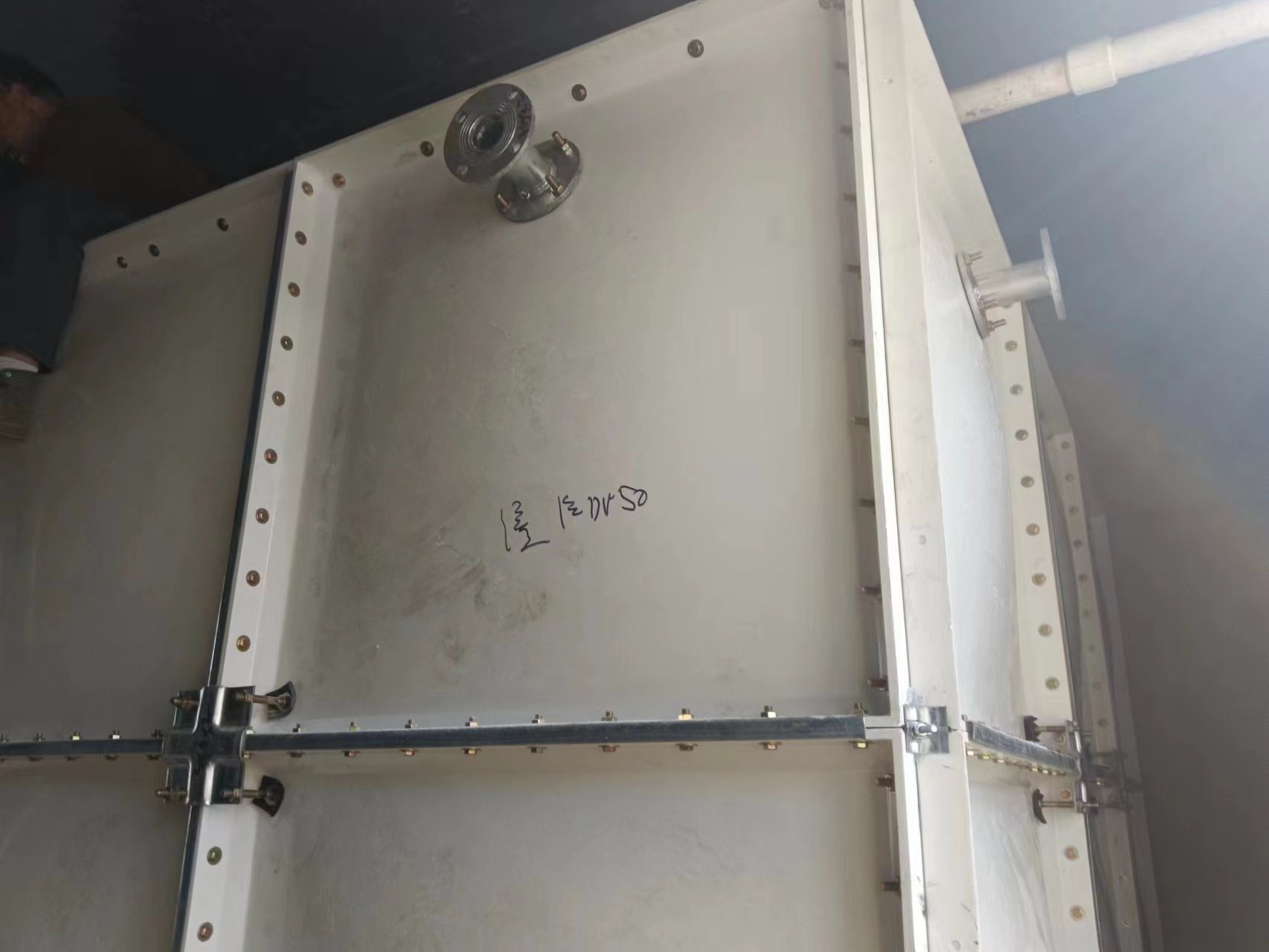首先,根據水箱尺寸,匹配好拉筋的數量和長度。其次,用拉筋板測量拉筋對絲緊固部位,劃痕,打孔,上對絲,緊固,使拉筋平整的與水箱箱體保持平衡。后,如果箱體與拉筋之間有較大的誤差,可通過調整螺栓緊固程度來調整誤差大小,直到把誤差調整到小為止。如果僅僅用水箱板和膠條組成我們需要尺寸的水箱,雖然不透水了,但是還不能盛水,因為盛水之后水箱會承受一個向外的張力,必須加上拉筋系統受力,否則玻璃鋼水箱會形成一個高力矩體系,很容易撐壞。拉筋系統有圓鋼,內外拉筋板,對拉螺栓。